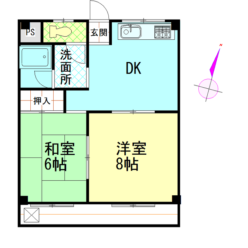 間取2DK 面積46.37㎡ 構造鉄骨造 | 物件種目マンション 階建/階3階建/2階 築年月1992年4月(築33年11ヶ月) |
