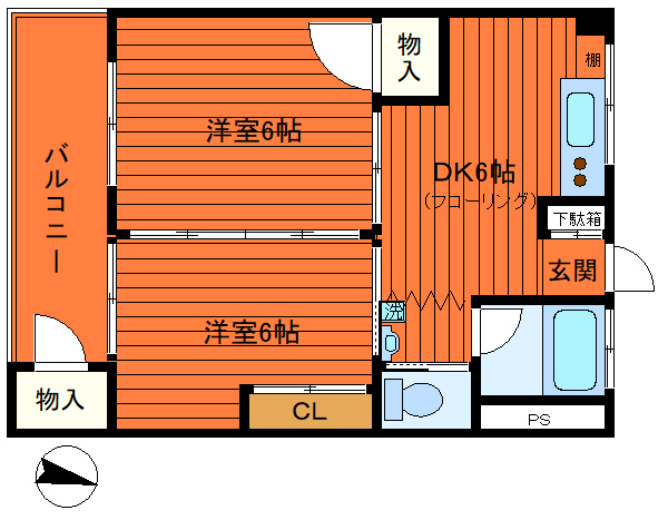 間取2DK 面積40㎡ 構造鉄筋コンクリート | 物件種目マンション 階建/階3階建/2階 築年月1971年1月上旬(築55年2ヶ月) |