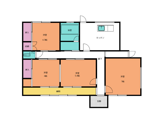 間取4DK 面積75.16㎡ 構造ブロック | 物件種目戸建住宅 階建/階1階建/ 築年月1974年1月(築52年2ヶ月) |