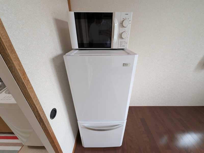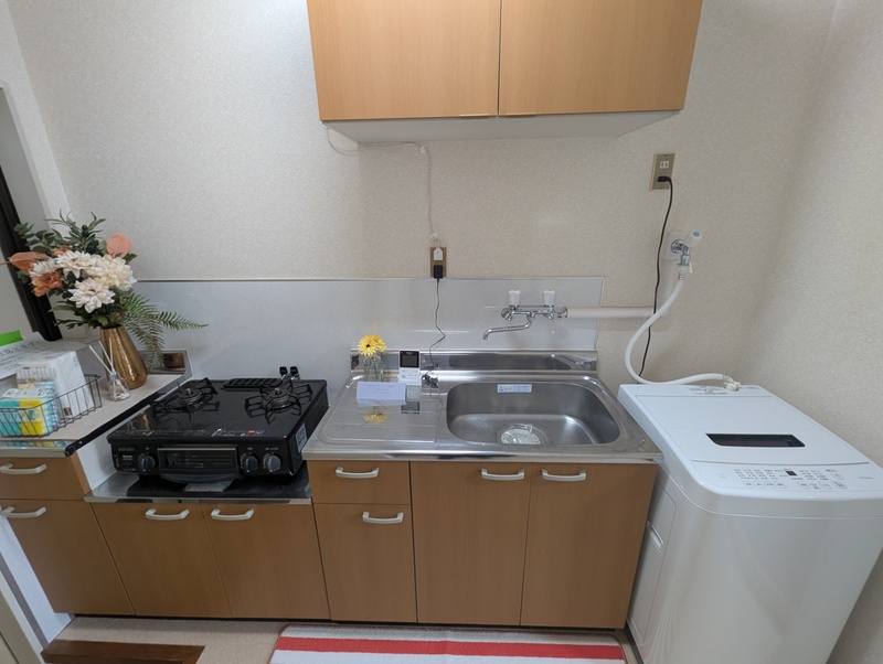 冷蔵庫・電子レンジ・2口ガスコンロ・洗濯機設置済みです。