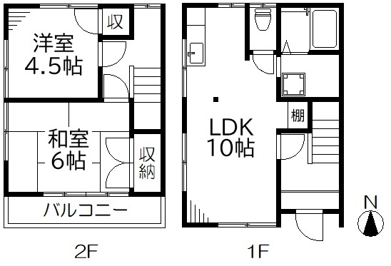間取2LDK 面積54.81㎡ 構造木造 | 物件種目アパート 階建/階2階建/2階 築年月1993年11月(築32年4ヶ月) |