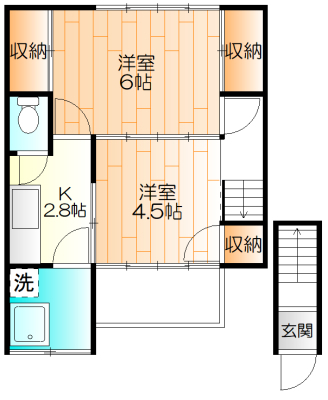 間取2K 面積34.65㎡ 構造木造 | 物件種目アパート 階建/階2階建/2階 築年月1965年3月(築60年9ヶ月) |