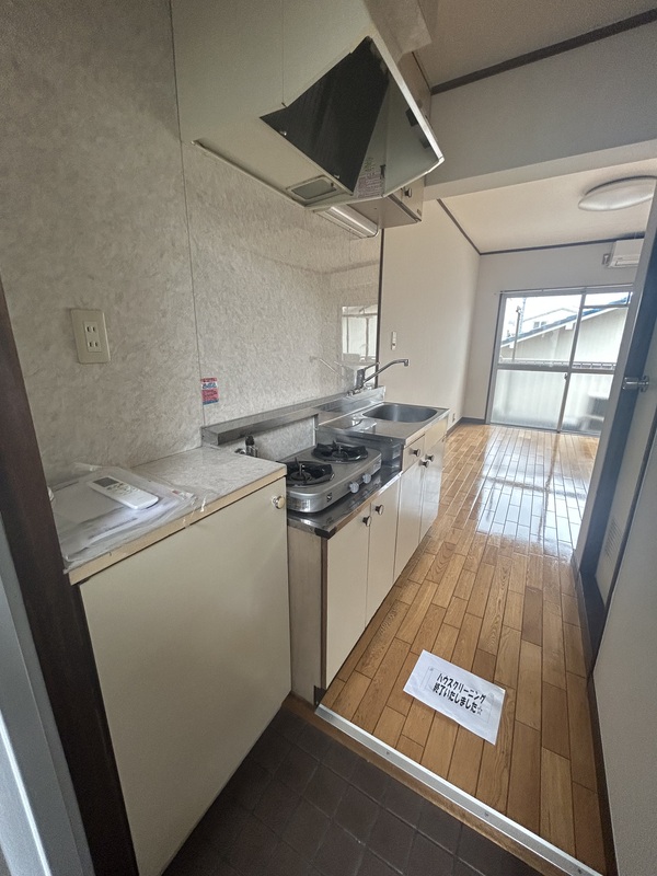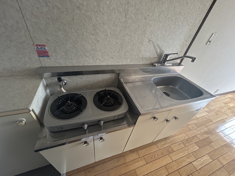 - 駐輪場 洗濯機置場 2口コンロ エアコン シューズボックス フローリング バルコニー 最上階