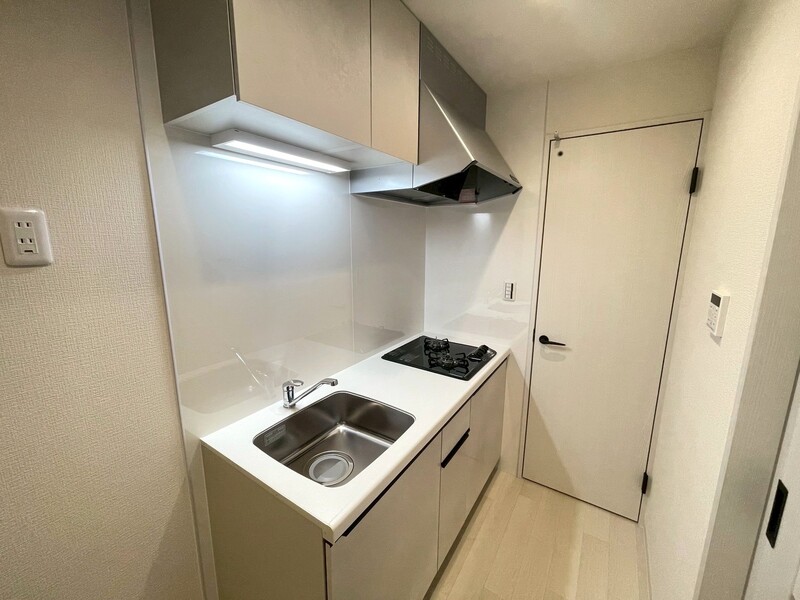 2口ガスコンロのシステムキッチン!上部・下部に収納があり、調理器具や食器等スッキリ片付きます♪