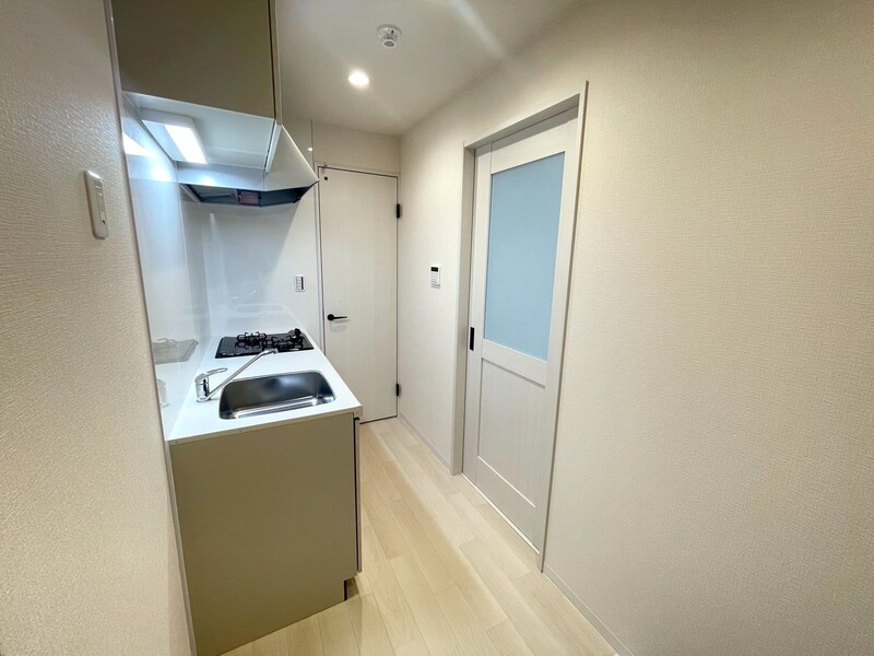 廊下&キッチンスペース。キッチン横が冷蔵庫置場です♪