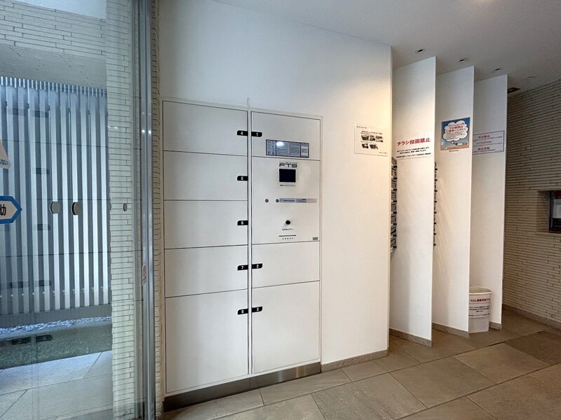 オートロックの綺麗なエントランス。宅配ボックスもあります。
