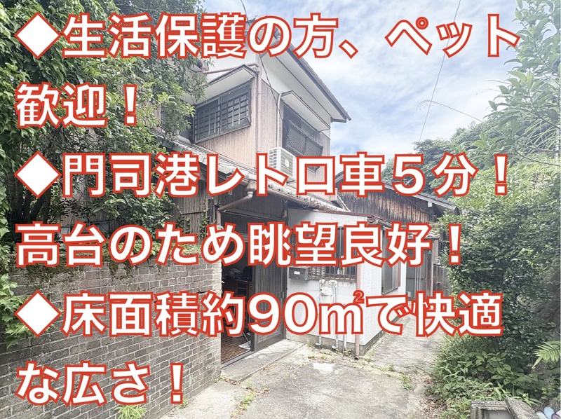 おすすめポイント◆門司港レトロ車5分!高台のため眺望良好! ◆キッチン、水回りリフォーム履歴あり! ◆生活保護、ペット歓迎!