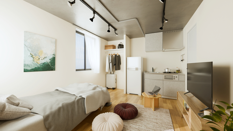 カーテンで区切ることで1DKになります!