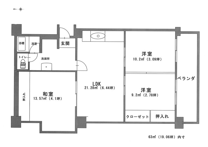 間取3LDK 面積内芯 63㎡ 構造鉄骨鉄筋コンクリート | 物件種目マンション 階建/階10階建/4階 築年月1981年3月21日(築45年0ヶ月) |