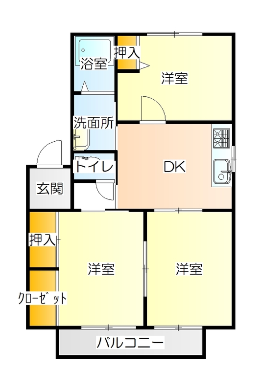 間取3DK 面積53.28㎡ 構造軽量鉄骨 | 物件種目アパート 階建/階2階建/1階 築年月1998年3月(築28年0ヶ月) |