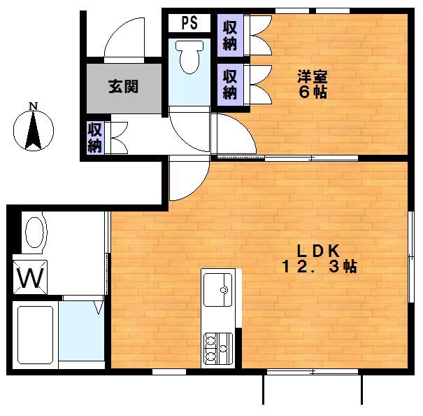 間取1LDK 面積45.7㎡ 構造木造 | 物件種目アパート 階建/階2階建/1階 築年月2022年7月(築3年8ヶ月) |
