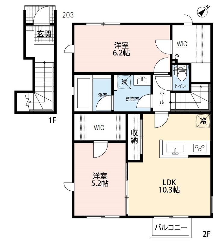 間取2LDK 面積63.2㎡ 構造木造 | 物件種目アパート 階建/階3階建/2階 築年月2019年3月(築7年1ヶ月) |