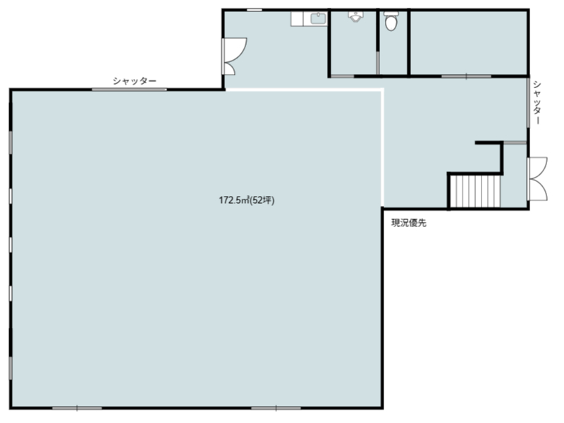 使用部分面積172.5㎡ 坪数52.18坪 坪単価1.1万円/坪/坪 | 駐車場空きあり 物件種目事務所(一部) 築年月2002年4月(築23年8ヶ月) |