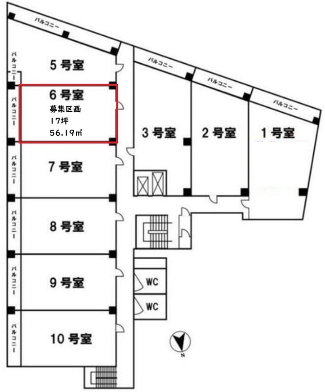 使用部分面積56.19㎡ 坪数16.99坪 坪単価1.41万円/坪/坪 | 駐車場なし 物件種目事務所(一部) 築年月1972年9月(築53年5ヶ月) |
