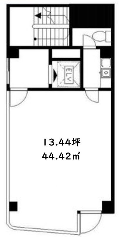 使用部分面積44.42㎡ 坪数13.43坪 坪単価1.42万円/坪/坪 | 駐車場なし 物件種目事務所(一部) 築年月1991年3月(築34年11ヶ月) |
