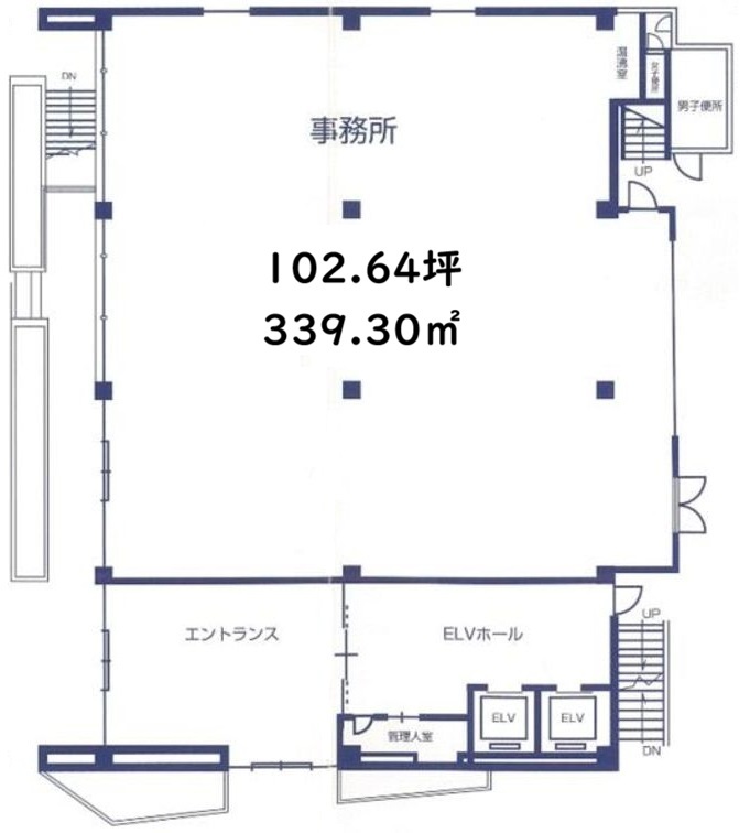 使用部分面積339.3㎡ 坪数102.63坪 坪単価1.81万円/坪/坪 | 駐車場なし 物件種目事務所(一部) 築年月1984年8月(築41年6ヶ月) |