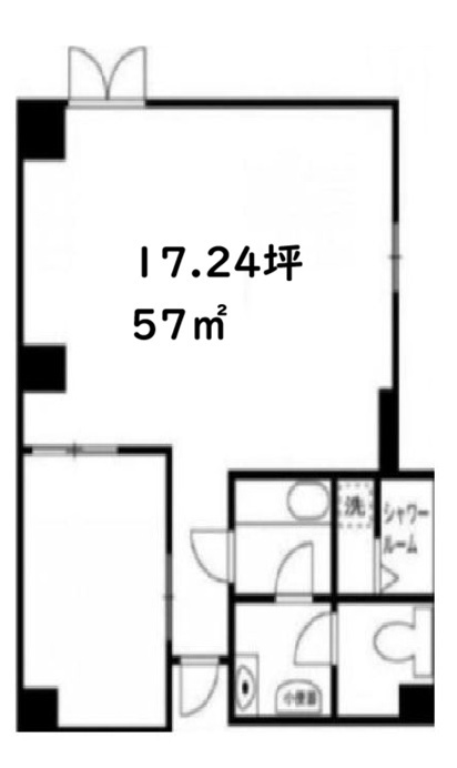 使用部分面積57㎡ 坪数17.24坪 坪単価1.8万円/坪/坪 | 駐車場なし 物件種目事務所(一部) 築年月2005年2月(築21年0ヶ月) |