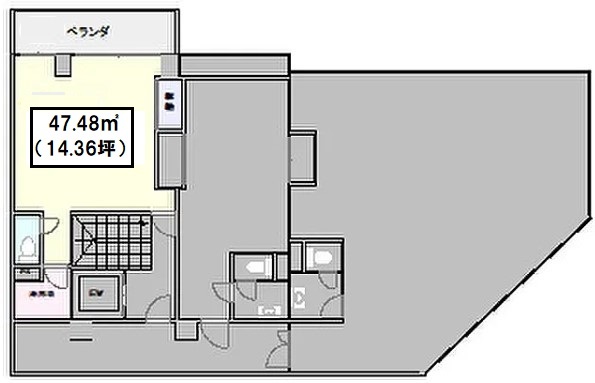 使用部分面積47.47㎡ 坪数14.35坪 坪単価1.11万円/坪/坪 | 駐車場空きあり 55,000円/月 物件種目事務所(一部) 築年月1969年12月1日(築56年3ヶ月) |