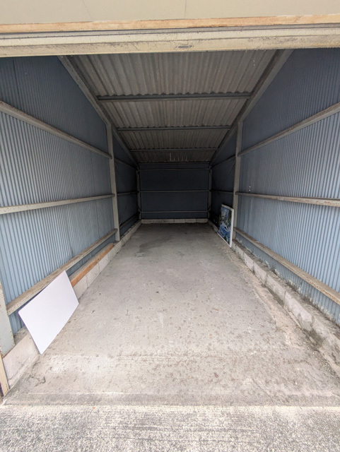 - 募集区画:1(2025年10月31日解約予定)・4(空き) 駐車場サイズ間口(シャッター面):横 2.3メートル 高さ 1.89メートル奥行:5.1メートル内部高さ:入口シャッター側 3.1メートル 奥 1.8メートル