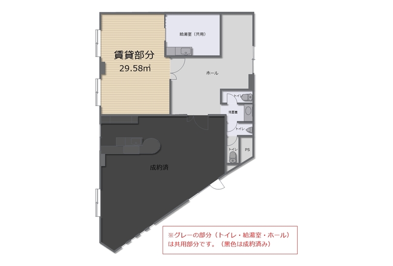 使用部分面積壁芯 29.58㎡ 坪数8.94坪 坪単価0.74万円/坪/坪 | 物件種目店舗・事務所(一部) 駐車場空きあり |