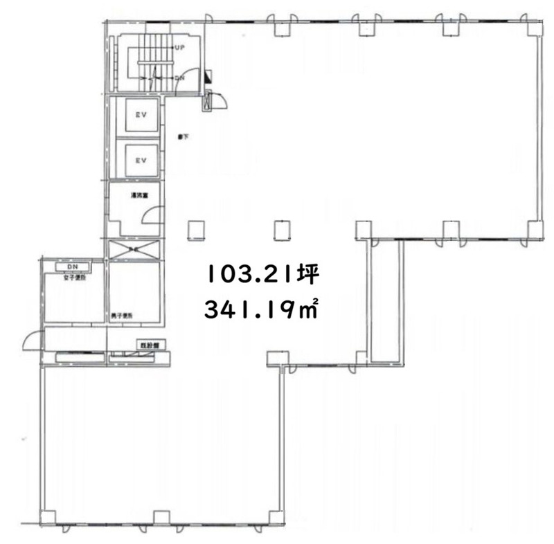 使用部分面積341.19㎡ 坪数103.2坪 坪単価1.81万円/坪/坪 | 物件種目店舗・事務所(一部) 駐車場なし |