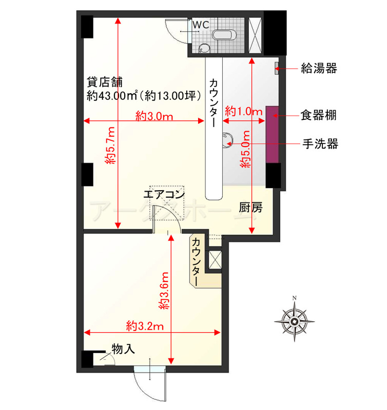 使用部分面積壁芯 43㎡ 坪数13坪 坪単価0.56万円/坪/坪 | 物件種目店舗(一部) 駐車場なし |