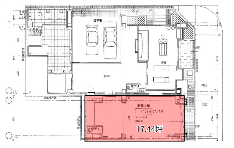 使用部分面積57.56㎡ 坪数17.41坪 坪単価1.51万円/坪/坪 | 物件種目店舗・事務所(一部) 駐車場なし |